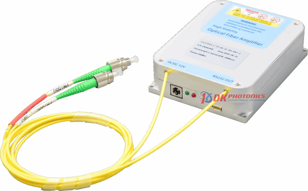 DK Photonics High Power Erbium-doped Fiber Amplifier Module in Compact Size for C-band is based on the principle of laser amplification of optical signals in erbium ytterbium co doped fibers. It adopts a uniquely designed optical path structure and reliable high-power laser heat dissipation technology. The working wavelength range covers 1535-1565nm, and the output optical power is 0.5-2W, with the advantages of high power and low noise. The compact module design facilitates system integration and can be used for fiber optic sensing, fiber optic communication, laser radar, and more.
